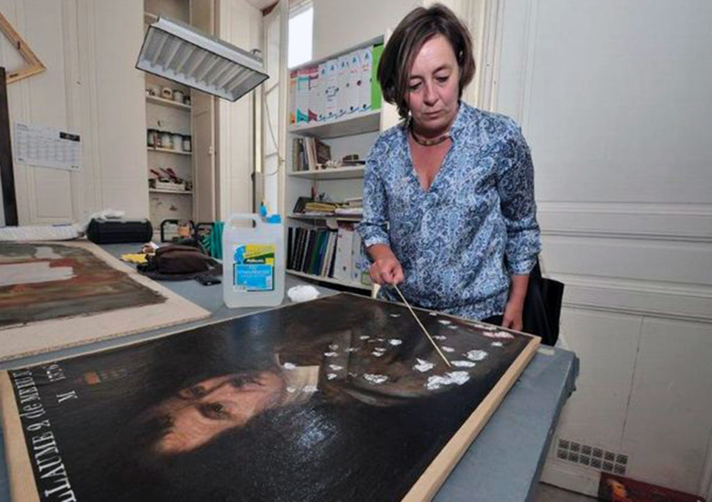 À la demande de l’État, propriétaire de la cathédrale Saint-Étienne, Christine Morillot restaure une grande partie des portraits des archevêques de la sacristie.