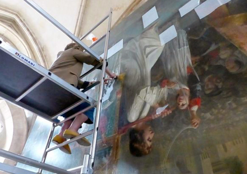 À la demande de l’État, Christine Morillot a restauré quatre tableaux trouvés dans la tour nord de la cathédrale Saint-Étienne de Sens. Fin juillet 2019, elle livrait son travail.